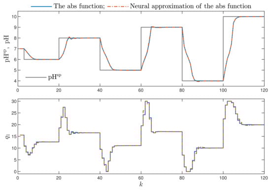 This work describes computationally efficient approaches to the MPC-L algorithms for nonlinear processes. In spite of the fact that a nonlinear model is used for prediction, a computationally simple quadratic optimisation task is solved at each sampling instant on-line, and nonlinear optimisation is not used. The proposed solution is based on two concepts: a neural approximator and advanced on-line linearisation. A practical approach to nonlinear MPC is to perform model or trajectory linearisation on-line. As a result, an easy-to-solve quadratic optimisation problem is obtained. Details of a few such algorithms may be found in [29]. An alternative is to use the fuzzy approach, in which a combination of multiple linear models approximates the nonlinear process, which also results in quadratic optimisation, e.g., [30,31]. Unfortunately, in research carried out so far, only the classical MPC-L cost function has been used. The main difficulty is the fact that the cost function in the rudimentary MPC-L optimisation task is not differentiable. To make it possible, in the presented approach, the classical MPC-L cost function is replaced by its differentiable representation. Such a representation is obtained by means of the neural approximator. Neural networks of the Multi Layer Perceptron (MLP) structure with two layers are used for two reasons. Firstly, they are universal approximators, capable of approximating nonlinear relations with great accuracy. Secondly, the obtained neural approximation is differentiable and poses no numerical problems for the presented computational scheme. The efficiency of the presented approaches is demonstrated for a simulated neutralisation process. In particular, the discussed MPC-L algorithms are compared with the classical MPC-L ones.