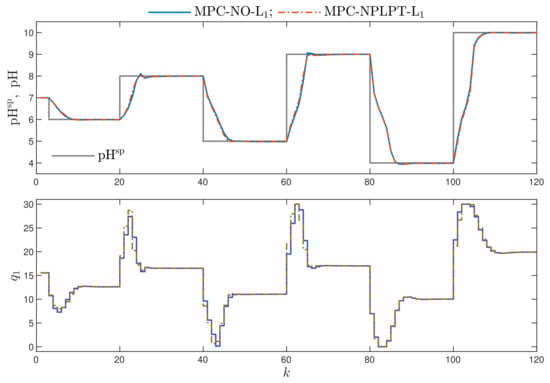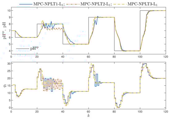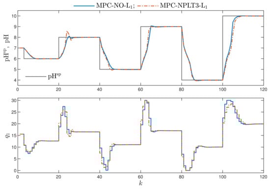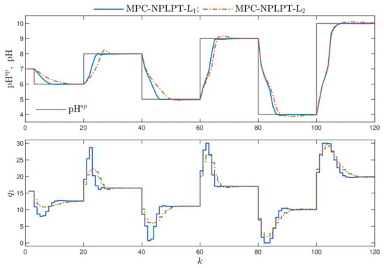 Typically, the minimised cost function used in MPC measures the sum of squared control errors predicted over some time horizon (the MPC-L algorithm). Such a formulation is computationally simple and has good numerical properties. The use of the sum of absolute values of the predicted control errors (the MPC-L algorithm) is much less popular. However, it may be easily verified that the second approach leads to better control quality [22,23,24,25]; the result is independent of the indicator used [23]. Furthermore, the classical L cost function is not always suitable from the point of stability, as pointed out in [26]. It must be also stressed that in regression (model identification), the classical L approach yields solutions fragile to outliers, while the L norm leads to robustness [27].