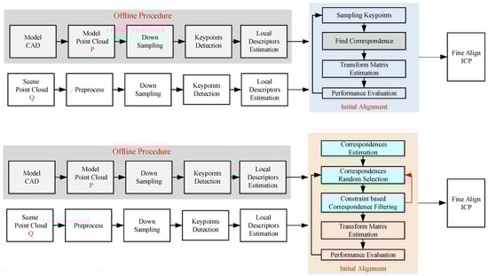 - In the initial aligning stage, instead of sampling the key points, the correspondence pairs between model and scene key points are generated in advance and chosen in each iteration, which reduces the redundant correspondence search operations.