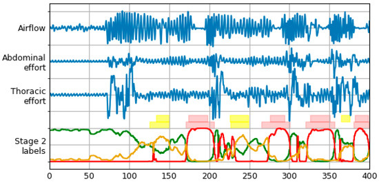 28]. In this work, the CNN was employed to deliver annotation with 1 s resolution. Multiple channels were then used to perform the analysis. Only periodic breathing and possible episodes were excluded from the study. However, our proposed method shows better results.