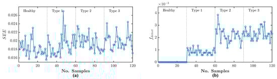 where , , and are the three-phase ABC frame residual current signal. The standard error estimate (SEE) is used to evaluate the fitness of the estimated current signal as follows,