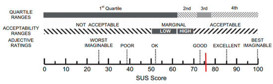 - Bangor, A.; Kortum, P.T.; Miller, J.T. An empirical evaluation of the system usability scale. Int. J. Hum.–Comput. Interact. 2008, 24, 574–594. [Google Scholar] [CrossRef]