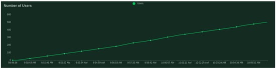 Regarding the validation server, we present the scalability results given by the Locust tool [43]—a scalable performance testing tool. We test with 500 users (peak concurrency) at a spawn rate (users started/second) of 0.5. We get an average response time of 4.55 ms, where the minimum response time was 0.84 ms and maximum response time was 59.40 ms for an average content size of 147 and 83.86 requests per second.