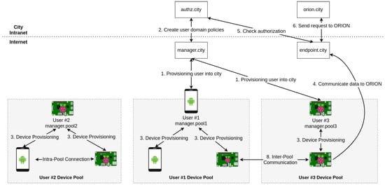 - Devices’ Pools: After device provisioning, the system can provide a decentralized architecture where the trusted devices can communicate end-to-end between each other (if they are in the same or trusted pools). Different pools can be trusted between each other if both managers agree on that (for this reason, we consider that the scalability is better than other systems that need to authenticate all devices between each other);