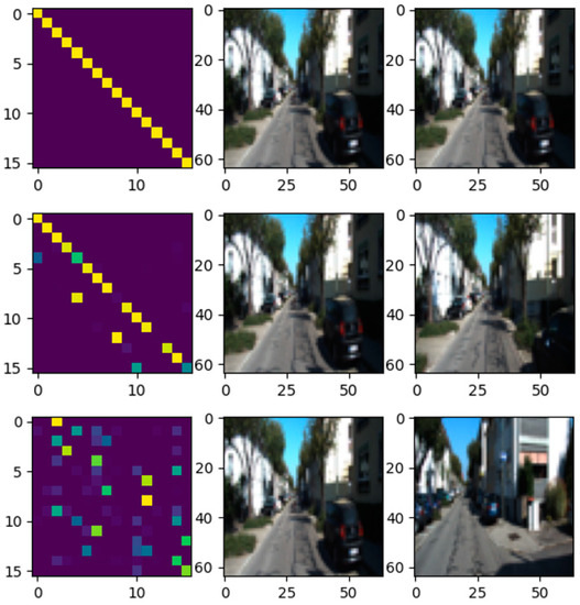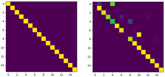 The variable x in the Gaussian function represents each element in the correlation matrix, which is linear. The parameter σ in the Gaussian function is related to the scale of the input and affects distribution concentration. A lower σ can strengthen the positive correlation and make unimodality. A higher σ can strengthen the negative correlation and make multimodality. The express in Formula (2) is equal to Formula (1); thus is the same as . The parameter k is the number of columns. As for Figure 2, k is 16.