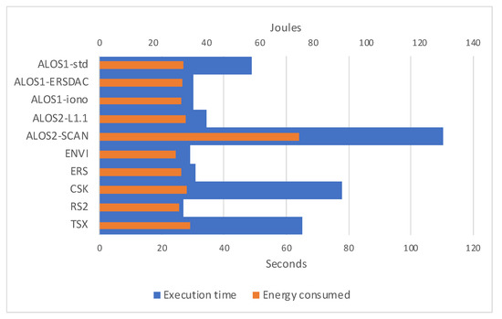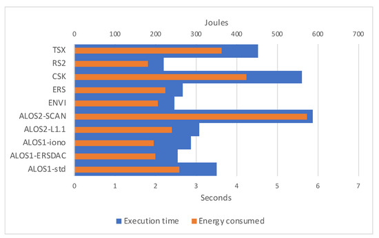 As a final perspective, we used our cross-correlation software on an innovative edge computing System-on-Chip, namely the Jetson Nano, to test the opportunity of moving SAR data processing onboard. In this case, we can imagine having several pipelined software processors delivering final results with acceptable latency, providing operational intelligence in real-time. If we consider the acquisition time of data strips and the low energy consumption for this specific processing step, the idea seems reasonable. It could provide an innovative setting for better usage of remote sensors, often underused for critical data transfer to the ground station.