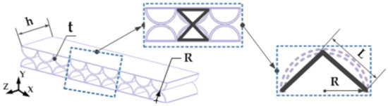 Assuming that the double-layer semicircular honeycomb flexible support structure is as shown in