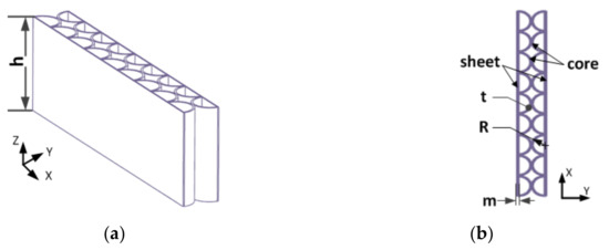 In order to verify the correctness and validity of the analytical expression of the equivalent model of the double-layer semicircular cell, we used the commercial finite element software ABAQUS to carry out the finite element analysis. In the mechanical simulation analysis of a honeycomb structure, it is generally considered that the fine modeling method can accurately characterize the structural characteristics and actual deformation state of a honeycomb plate. Therefore, we used the method of comparing the fine modeling with the equivalent modeling to verify the accuracy of the equivalent model of a double-layer semicircular honeycomb. The double-layer semicircular honeycomb sandwich layer is equivalent to the transverse anisotropic sandwich panel of the corresponding size. Six groups of different relative thicknesses (the ratio of the wall thickness to the radius of the honeycomb core layer) were used as data for the comparative analysis. According to the equivalent formula of the honeycomb core derived in the previous section, the physical properties of the intermediate layer can be obtained as shown in