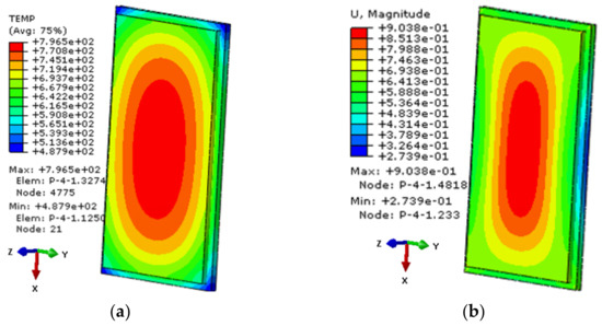 Figure 8a, the maximum temperature of the outer surface of the window glass will reach 800 °C, and the middle temperature is higher than the edge temperature. As can be seen from