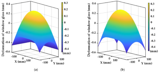 9]. On the basis of subsonic flight conditions, Y.W. Li carried out an optical-mechanical-thermal integrated analysis of the optical window of an aerial remote sensor. The window support structure used a non-metallic rubber ring (the applicable temperature range of the rubber ring was from −100 to 300 °C), which reduced the deformation of the window glass and met the imaging requirements of the remote sensor [