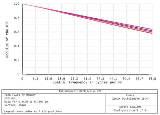 Figure 14. The spatial frequency of the optical system modulation transfer function (MTF) of the deformed window glass after system focusing is 0.58 at 63 cycles/mm, as shown in