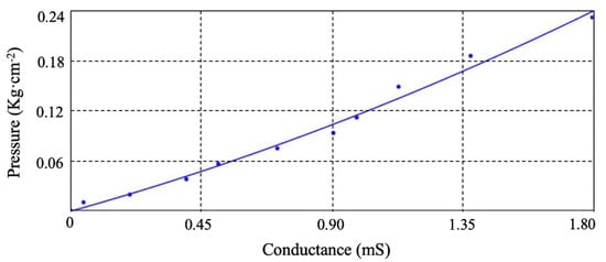 Fitting the pressure value and FHSA’s conductance, the relational formula and fitting curve graph are shown in Equation (6) and Figure 2, respectively.