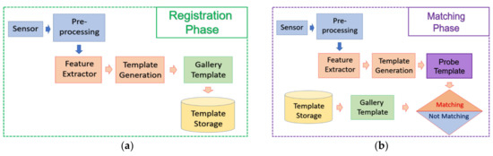 Common Phase in biometrics: (a) registration phase; and (b) matching phase.