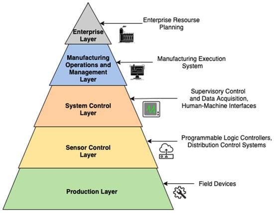 Top-down approach to manufacturing system according to ISA-95 Automation Pyramid.