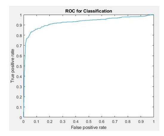 We classified 2072 WL and NBI colorectal polyp images provided by the Chang Gung Medical Hospital according to the results of pathological interpretation. The dataset was randomly split into training, validation, and testing group. None of the image shared between groups. The number of polyp images used for classification training, verification, and testing was 1370, 342, and 360, respectively (Table 15). The verification and testing data comprised the images that were accurately detected, and polyp images different from the preceding ones were used as the verification data. The 5-fold cross validation was also used for training, testing, and validation of polyp classification. Table 16 presents the performance index in which true positive (TP) is the situation where the center point of the prediction box falls at any GT; false positive (FP) is the situation where the center point of the prediction box does not fall at any GT; and false negative (FN) is the situation where no prediction box appears. True negative (TN) was not included because all the images in the data set had at least one polyp, implying that they were not negative images. Table 17 and Table 18 present the confusion matrices for the classification of WL and NBI grayscale images, respectively. Table 19 presents the performance evaluation of polyp classification. Figure 12 shows the ROC curve and the AUC value is 0.93. The results indicated that NBI images facilitated more accurate polyp identification than WL images. During polyp classification, neoplastic polyps were likely to be misjudged as hyperplastic polyps when polyp textures were not obvious, polyps were smaller than 1800 pixels, or when the images had an excessively low resolution. However, hyperplastic polyps were likely to be misjudged as neoplastic polyps because of the WL around polyps in the images and when polyps were smaller than 1800 pixels.