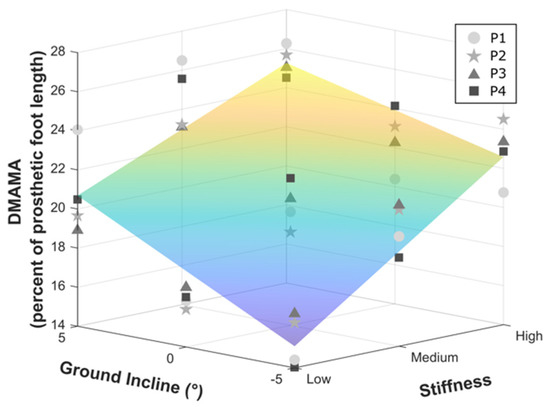 Multivariate regression on the combined effects of stiffness and ground incline on DMAMA.