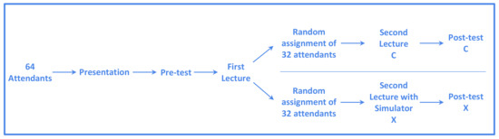 As depicted in Figure 4, the experiment followed a randomized pre-test post-test design with a control group (CG) and an experimental group (EG) [27]. The steps are now described in sequence: