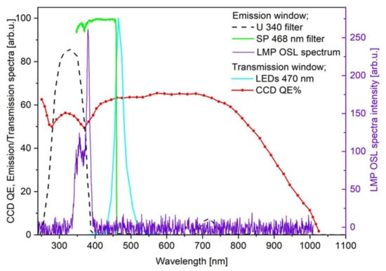 - Sądel, M.; Bilski, P.; Kłosowski, M. Optically stimulated luminescence of LiF: Mg, Cu, P powder—influence of thermal treatment. Radiat. Prot. Dosim. 2019, 186, 488–495. [Google Scholar] [CrossRef]