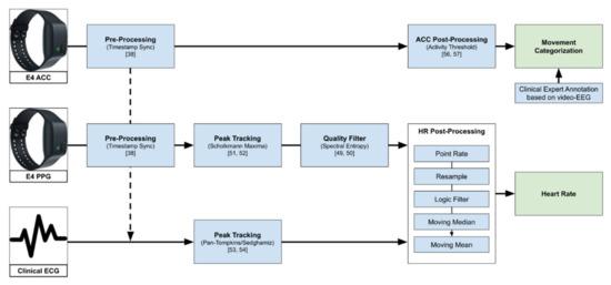 - Zijlmans, M.; Flanagan, D.; Gotman, J. Heart rate changes and ECG abnormalities during epileptic seizures: Prevalence and definition of an objective clinical sign. Epilepsia 2002, 43, 847–854. [Google Scholar] [CrossRef] [Green Version]