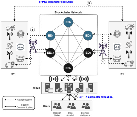 Figure 3 which represents the ePPTA with a security parameter that hardens the MFA is implemented in Step 3 of the blockchain-based IoV model that was previously highlighted in Figure 2. Specifically, the ePPTA gives an assurance of access-control, confidentiality, and integrity. This also relies on the consensus made to the nodes in the blockchain network. Figure 4 shows the channel where ePPTA security parameter is implemented.