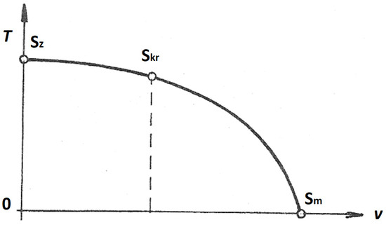 The equation gives the so-called temperature parabola (Figure 4), which determines the dependence in which the temperature of the gas decreases with accelerating flow.