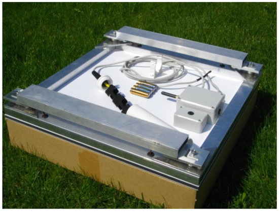 Most of the professional scales use one sensor covering the entire range of the allowable weight of the hive. In this case, a base with stable balance is required, allowing the measured weight to be distributed fairly regularly. The authors propose the use of four strain gauges, significantly improving the stability and the balance of the structure as well as leading to better energy consumption properties. An image of one of the designed and realized beekeeping scales with implemented remote reading is presented in Figure 2 [16].