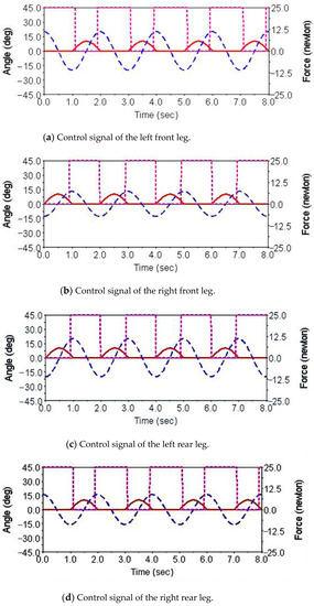 - Zhang, Z.G.; Fukuoka, Y.; Kimura, H. Adaptive running of a Quadruped Robot using delayed feedback control. In Proceedings of the 2005 IEEE International Conference on Robotics and Automation, Barcelona, Spain, 18–22 April 2005. [Google Scholar]
