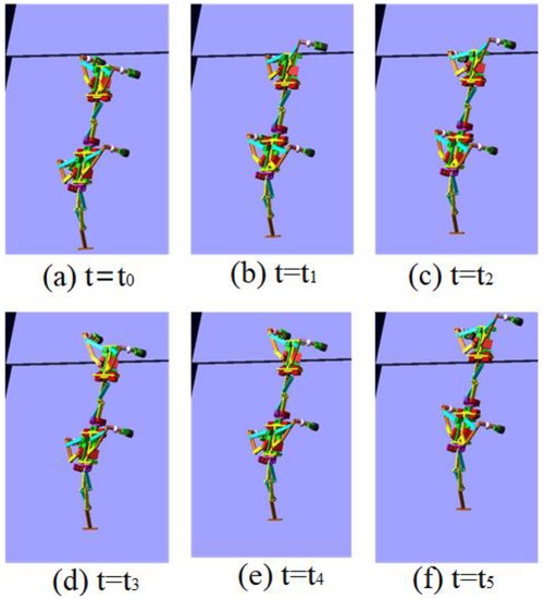 The simulation environment we used, which is not included with the perceptual system and advanced decision system, is relatively simple. Therefore, the switching time between gait triggers is preset through the program. To substantially increase the robot’s adaptability to the environment and to achieve steady climbing and walking in complex terrains and in dynamic environments, future work will include developing obfuscation and senior decision-making. It is also our aim to incorporate the robot control and multi-target tracking tasks in future research [33,34].
