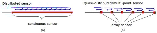 (a) Distributed fibre-optic sensor and (b) quasi-distributed fibre-optic sensor.