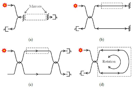 Phase modulation-based sensing uses the interferometric techniques (a) Fabry–Perot interferometer (b) Michelson interferometer (c) Mach–Zehnder interferometer and (d) Sagnac interferometer [52].