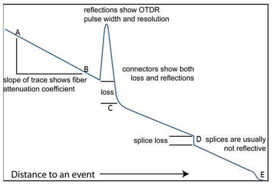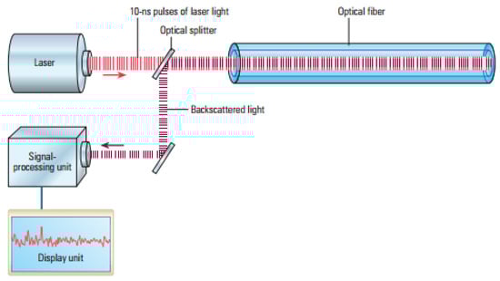 Distributed sensing uses scattered light to detect, measure and analyse certain backscattered characteristics and changes that occur in the optical fibre. Rayleigh, Raman and Brillouin type scattering are used in order to measure those changes. Distributed systems are based on two main techniques: optical time-domain reflectometry (OTDR) and optical frequency domain reflectometry (OFDR) with the purpose of measuring the optical loss distribution along a fibre in order to evaluate along the fibre its condition and to detect, locate and quantify the losses and defects all along. In this principle, a pulse of light is launched through the fibre and the optical properties of the backscattered light are measured [86].
