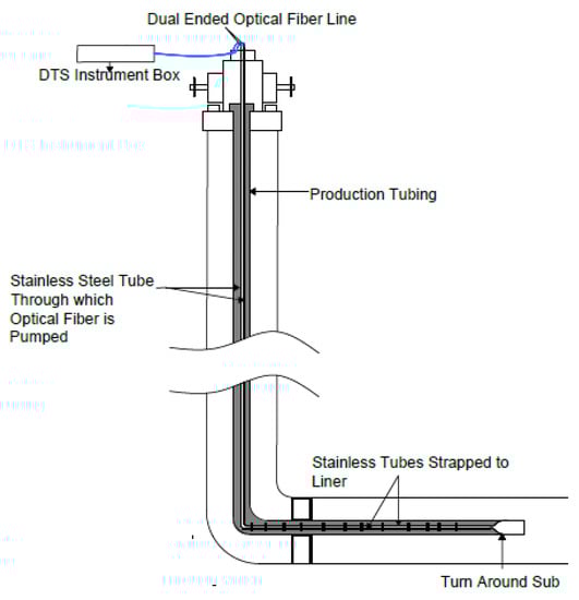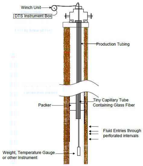 - Smolen, J.J.; Van Der Spek, A. Distributed Temperature Sensing: A DTS Primer for Oil & Gas Production, 2003. The Hague: Shell International Exploration and Production, B.V. Available online: http://drilling.posccaesar.org/export/385/projects/DailyProductionReport_1.0/XML/Version1.0/WITSML131/doc/Shell_DTS_Primer.pdf (accessed on 19 April 2021).