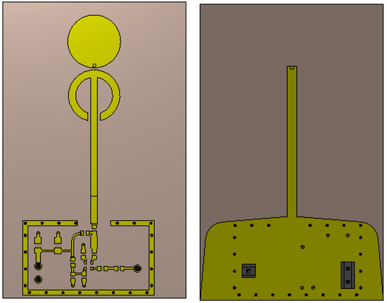 Antenna geometric parameters, front (top) view on the left and back (bottom) on the right.