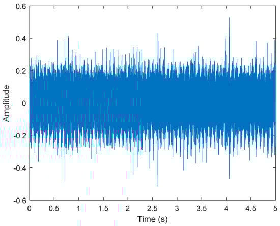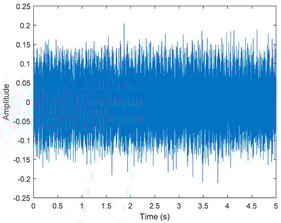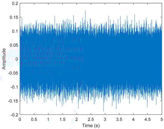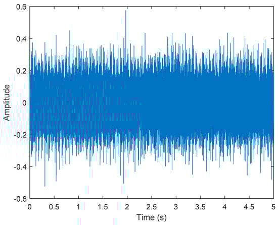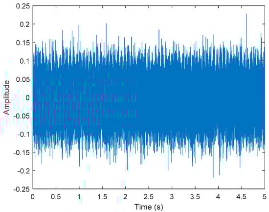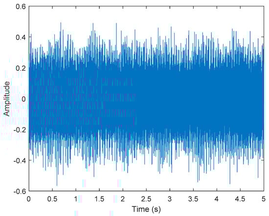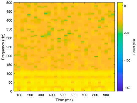 The short-term Fourier transform (STFT) is a time-frequency analysis method with a fixed time window. The basic idea was to use a window function to intercept the signal. If a signal was stable in the window, a Fourier transform was used to analyze the signal in the window. The frequency that existed at a time was determined, and then the window function was moved along the signal time to obtain the relationship between the signal frequency and time; the time–frequency distribution is shown in Figure 3. The X-axis is time in seconds, the Y-axis is frequency, and the Z-axis color represents power (dB). Figure 3 shows that most of the data were disturbed by noise, and the 40, 60, and 100 Hz signals can be vaguely seen.