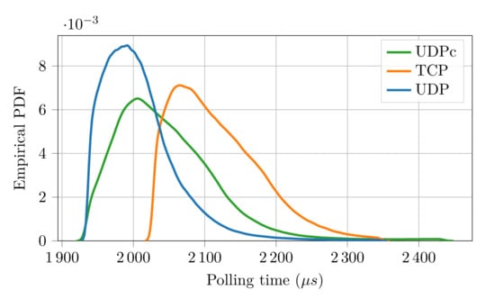 The results of the experimental campaign are reported in Table 3 (packet loss), Table 4 (polling time statistics) and Figure 6 (polling time empirical PDF).