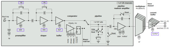 - Löchner, S.; Schmelling, M. The Beetle Reference Manual. In LHCb-2005-105; CERN: Geneva, Switzerland, 2006. [Google Scholar]
