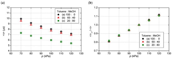 The luminescence lifetime change by pressure is, in addition to the change in luminescence intensity, represented by the Stern–Volmer relationship [], as follows: