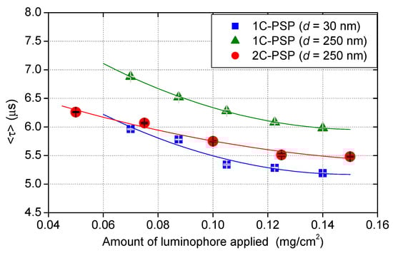 Change in with the amount of luminophore applied per sample area for 2C- and 1C-PSPs. The layer thickness was h ≈ 10 μm.