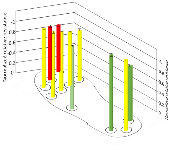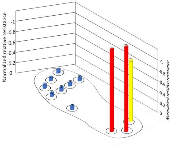 Normalized resistance of sensors during position C.