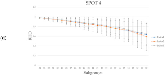 The analysis of the first spot (SPOT1) was conducted exploring the effect of the sample size reduction on the three different indices.