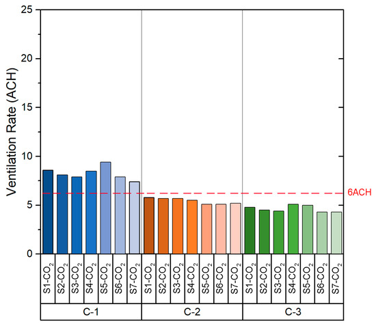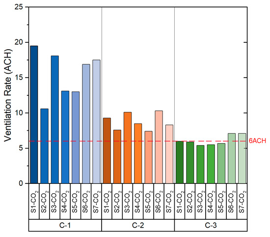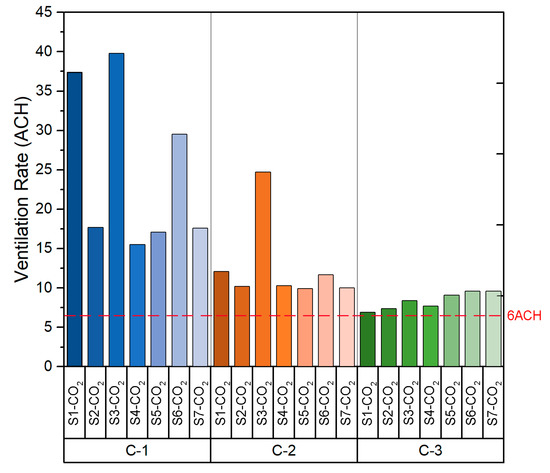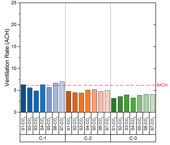 - Batterman, S. Review and extension of CO2-based methods to determine ventilation rates with application to school classrooms. Int. J. Environ. Res. Public Health 2017, 14, 145. [Google Scholar] [CrossRef] [PubMed]