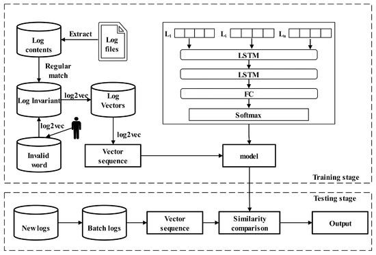 At present, the machine learning-based method mainly utilizes the LSTM model to infer whether the log is abnormal or not by judging the log sequential relationships. Deeplog [13] leverages LSTM to model the sequence of log keys for a particular type of log, automatically learning normal patterns from normal log data to identify system exceptions. References [41,42] analyze the application of various LSTM models in anomaly detection, such as bidirectional LSTM and stacked LSTM.