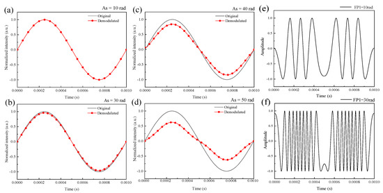 3.1. Simulation of the Effect of the Signal Intensity on Demodulated Signals