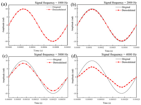 3.2. Simulation of the Effect of Signal Frequency on the Demodulated Signals