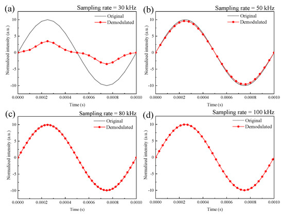 3.3. Simulation of the Effect of the Data Sampling Rate on the Demodulated Signals