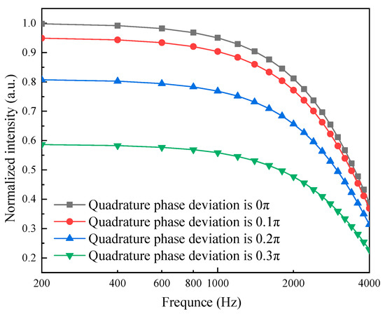 4.1. Simulation of the Effect of the Quadrature Phase Deviation on the Frequency Response