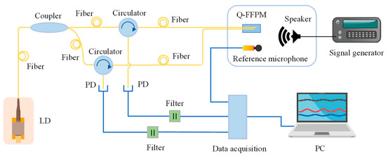 - Liu, B.; Lin, J.; Liu, H.; Ma, Y.; Yan, L.; Jin, P. Diaphragm based long cavity Fabry–Perot fiber acoustic sensor using phase generated carrier. Opt. Commun. 2017, 382, 514–518. [Google Scholar] [CrossRef]