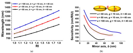 - Nishiuma, S.; Handa, Y.; Imamura, T.; Ogino, M.; Yamada, T.; Furusawa, K.; Kuroda, R. Localized surface plasmon resonant metal nanostructures as refractive index sensors. Jpn. J. Appl. Phys. 2008, 47, 1828. [Google Scholar] [CrossRef]