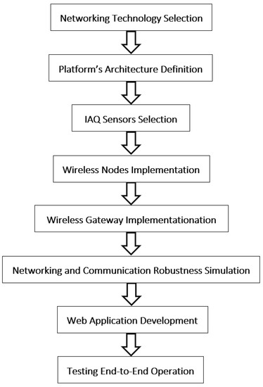 Since the need for IAQ control to support early warning systems for airborne viruses was sufficiently justified in the introduction section, this section describes the methodology and materials used for the development and implementation of an IAQ wireless sensors network platform emphasizing the low-cost, low complexity, open-source and scalable properties. Specifically,