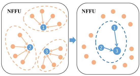 As shown in Figure 4, our single NFFU takes the points in the subsampled point cloud Pl+1 as the center points, and then searches for the neighboring points in the upper-layer point cloud Pl to construct the KNN graph. Then, we constructed another KNN graph whose center points are the points in Pl+1, and the neighboring points are also the points in Pl+1. We employed NFFU again to propagate the information of points. By simply stacking multiple NFFUs, we significantly expanded the scope of information dissemination and increased the receptive field for each center point, which can improve the network performance.